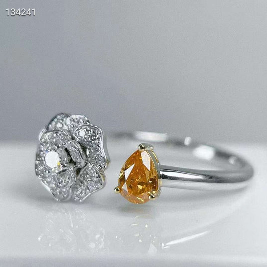 Strahlender Sonnenuntergang: 18K Gold Birnenschliff Orangener Diamantring mit internationalem Zertifikat