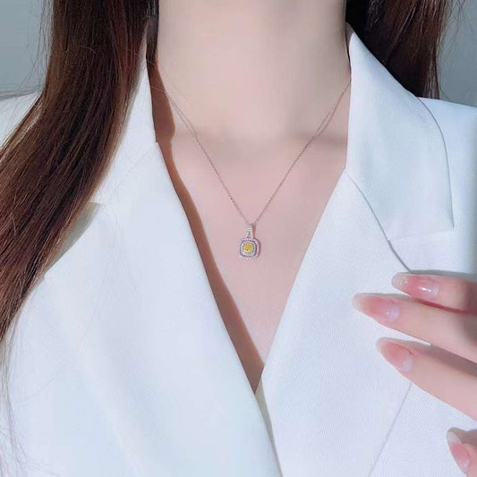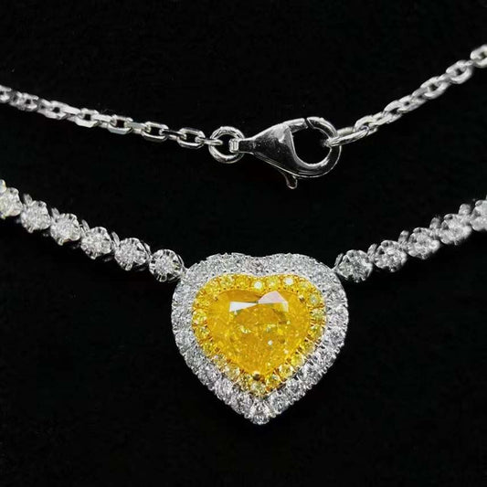 Glanz der Sonne: Elegante 18k Gold Halskette mit Natürlichen Gelben Diamanten