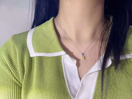 Sonnenglanz der Eleganz: 18k Gold Halskette mit Natürlichem Gelben Diamanten und Zertifikat