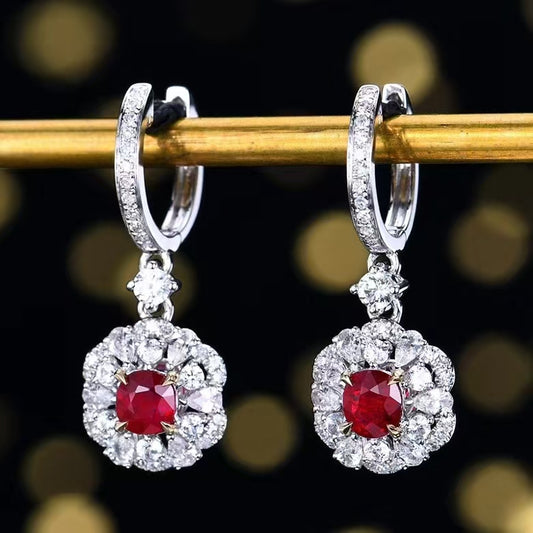 Feuer der Leidenschaft – 18k Goldohrringe mit 0.66ct natürlichem Rubin im Taubenblut-Rot