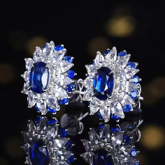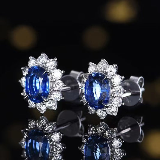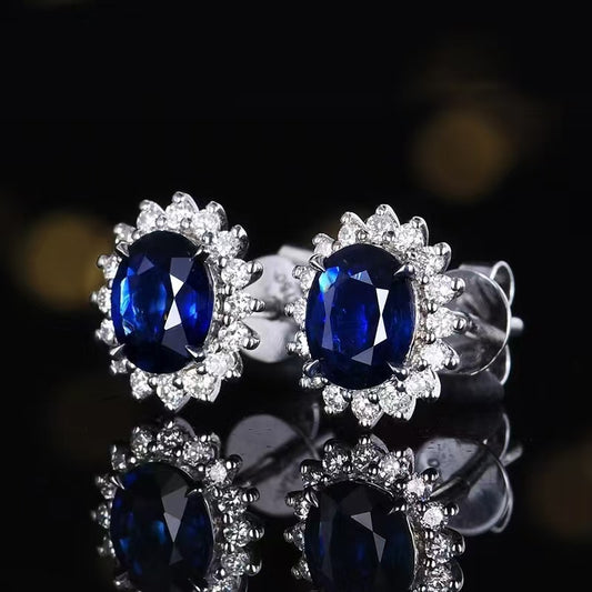 Majestic Blue Radiance: Exquisite 18K Gold Royal Blue Saphir Ohrringe